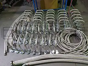 Existen gran variedad de latiguillos hidráulicos atendiendo a la presión y condiciones que van a tener que soportar, además de la finalidad de su uso. Los latiguillos hidráulicos permiten conectar elementos, distribuyendo líquidos como el aceite entre sí. Se componen de una manguera, de un casquillo, de un racor para manguito hidráulico y de un prensado. Los terminales normalmente son metálicos en acero carbono o acero inoxidable y pueden tener multitud de formas y estándares. La tubería flexible existen cientos de tipos en función de la presión, temperatura y fluido de servicio.